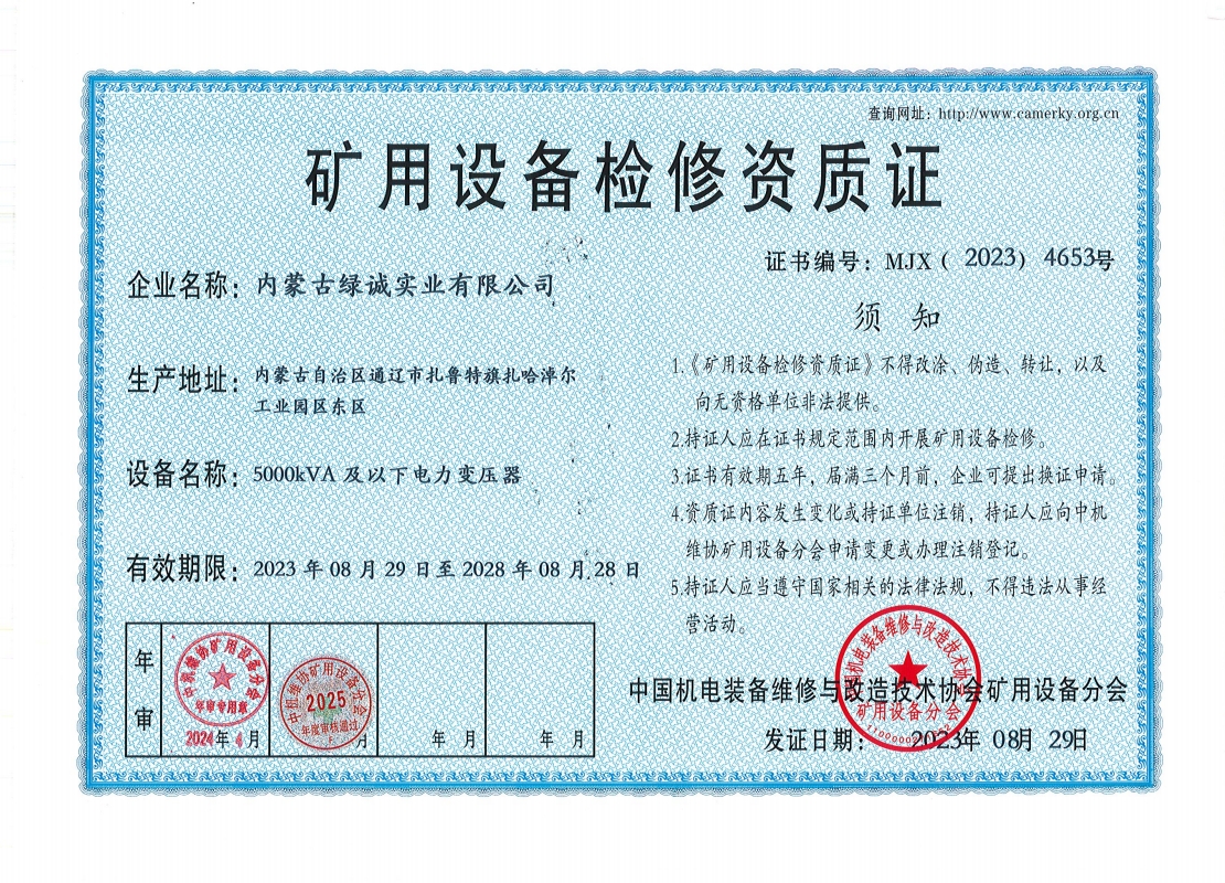 2018年我公司通過中國(guó)機(jī)電裝備維修與改造技術(shù)協(xié)會(huì)礦用設(shè)備分會(huì)審核并取得了9項(xiàng)礦用設(shè)備檢修資質(zhì)證書。公司本著“誠(chéng)信為本 質(zhì)量為先 全心全意為客戶 ”的服務(wù)理念,圓滿完成各個(gè)廠礦的機(jī)械維修及配套服務(wù),期待與您共同合作。